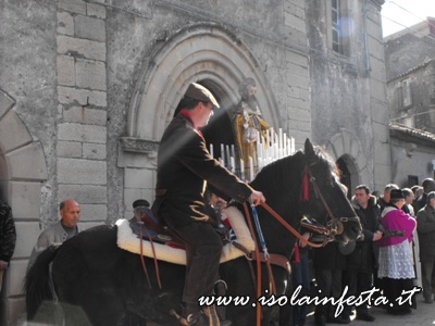 La sera della vigilia, inoltre, si accende il fuoco al piano terra della torre campanaria, esso è acceso con la legna offerta dai devoti che, venendo a fare “u viaggiu”, cioè una visita di omaggio al Santo, portano sottobraccio un pezzo di tronco per arderlo. A seguito della S. Messa viene celebrata una antica funzione religiosa chiamata “u du’ uri” (il “due ore”) perché anticamente veniva celebrata due ore prima dal crepuscolo. La funzione consiste nella recita della coroncina della “Settena” con in più il Santo Rosario,il canto delle Litanie Mariane e l’esposizione della reliquia del Santo. L’inno di Sant’Antonio e le Litanie ripetono antiche melodie paesane accompagnate da un vecchio organo a canne che è azionato a mano per mezzo di un mantice.