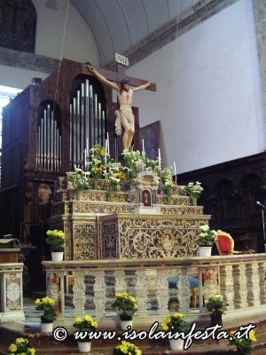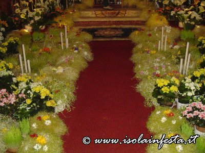 Il Giovedì Santo mattino viene parato l’altare con i fiori e con i germogli simbolo di vita; la sera, dopo la Messa in Coena Domini, viene portato in processione e reposto nella sua cappella il Santissimo che servirà per fare la comunione il Venerdì Santo.