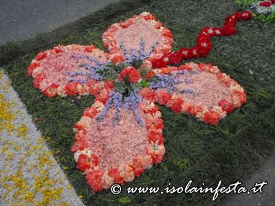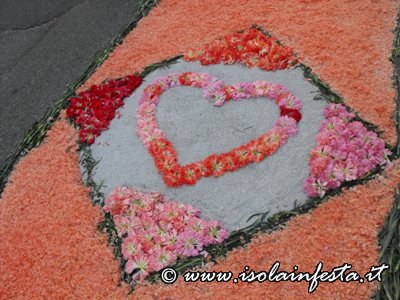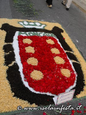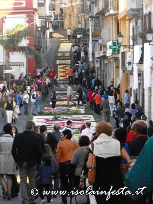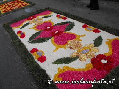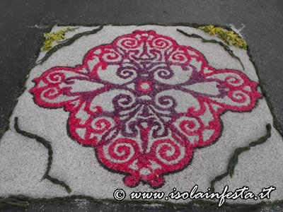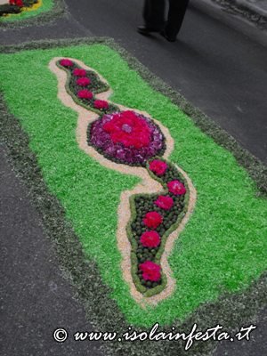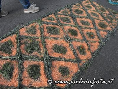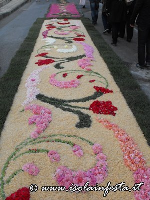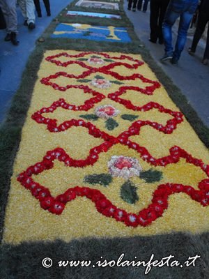 La mattina del venerdì precedente la domenica del Corpus Domini inizia la realizzazione del tappeto floreale lungo 310 metri di lunghezza e 2,5 metri di larghezza; si preparano di disegni dagli artisti, e tutto il popolo li aiuta spennando i fiori, per lo più garofani e rosmarino che sono elementi basilari. Nei vari disegni realizzati vengono rappresentati la vita di Cristo, della Madonna e Santi protettori del luogo, cambiando di anno in anno un tema di riflessione.