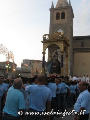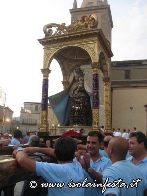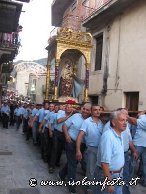 Nel pomeriggio della solenne giornata in cui la Chiesa Cattolica onora il Dogma dell’Assunzione di Maria al cielo, si riuniscono i numerosi devoti della Madonna, che dopo aver posto il venerato simulacro marmoreo sul fercolo, lo portano in processione per le vie principali del paese.