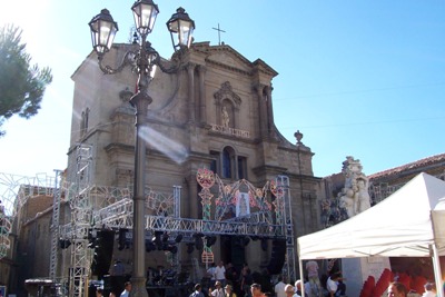 Nella giornata del 26 luglio, prende atto la vera festa, una delle manifestazioni religiose più spettacolari, eccentriche e folli della Sicilia. Tutto ha inizio nel tardo pomeriggio, quando il simulacro di S. Giacomo viene sceso dalla preziosa vara barocca, posta sull’altare maggiore, e traslato sulla massiccia vara neoclassica, indiscussa protagonista della processione e dei “Miracoli”, insieme al Santo. Quando il simulacro è stato saldamente ancorato su di essa, la vara viene sollevata dai portatori, disposti fittamente nelle aste del baiardo, e inizia la prima delle fasi spettacolari della festa: le corse all’interno della chiesa.