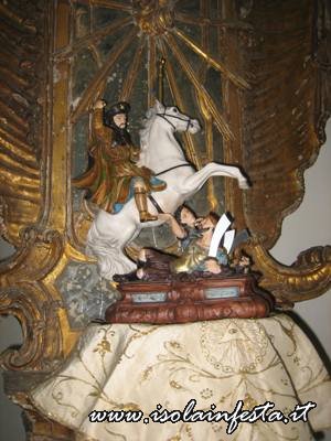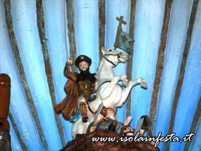 La processione arriva nella parte bassa dell’abitato, dove si erge una stele con un piccolo simulacro equestre di S. Giacomo, che segue la tipologia spagnola di “Mata Moros”, legato al miracolo di S. Giacomo apparso a liberare la penisola iberica dalla dominazione islamica.