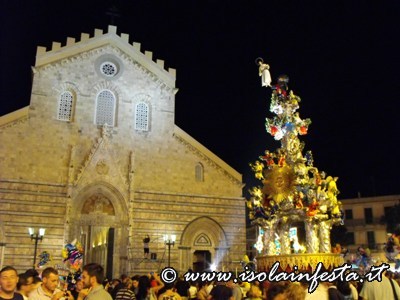 Nei giorni precedenti il 15 agosto, le vie della città sono percorse dalla processione festante dei due Giganti, assieme a numerosi gruppi folkloristici. Le due colossali statue a cavallo raffigurano i leggendari fondatori della città, la messinese Mata ed il moro Grifone (detti “u giganti e a gigantissa”).