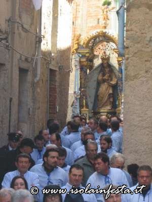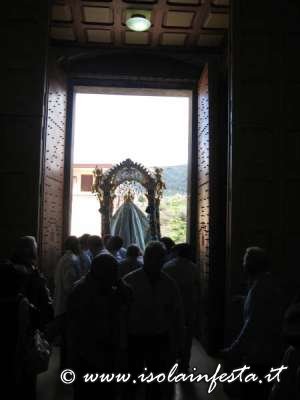Ficarra è un piccolo paese a 450 mt sul livello del mare. Situata su un territorio prevalentemente collinare è fiorente di tipica vegetazione mediterranea, ricco di arte, tradizione e folklore. Il centro urbano di origine medievale sorge su tre promontori, su cui si ergono il duecentesco castello, l’antico convento dei frati minori osservanti e il suggestivo Santuario dedicato a Maria SS. Annunziata, venerata nel centro nebroideo già da 500 anni. La Madonna rappresentata in un simulacro marmoreo, firmato dal Gagini, secondo la tradizione giunse a Ficarra nel lontano 1507 e per questo, giusto due anni fa, il paese si è trovato coinvolto nella celebrazione del Giubileo speciale, concesso dalla Santa Sede, per ricordare questo evento. Il 5 agosto 1957, per ricordare i 450 anni dall’arrivo del simulacro a Ficarra, la Madonna venne solennemente incoronata e proclamata regina di Ficarra con la corona d’oro, dono dei ficarresi, che oggi si può ammirare sul capo della Vergine nei giorni della festa. All’interno del Santuario, nella navata laterale destra, si può ammirare la cappella dell’Annunziata che si presenta modellata con stucchi di gesso in ricco stile barocco. Colonne festose, vari motivi ornamentali, caratteri floreali e i putti lasciano intuire una felice mano. Limitata da una seicentesca cancellata di ferro battuto, la cappella, conserva il miracoloso simulacro marmoreo della Vergine Annunziata, opera di pregevole fattura. La osserviamo in atteggiamento di umile attesa, protesa quasi in avanti, nella mano sinistra un libro e la destra poggiata sul petto, opera appunto, come già accennato, di Antonello Gagini. La cappella è impreziosita da un tabernacolo in marmo (opera del Vanelli) nel quale si custodiva il reliquiario barocco contenente il “Miracolo”, cioè il Sangue sudato dal volto della Madonna per ben cinque volte, dal 1592 al 1670. Purtroppo però, il reliquiario non è più conservato nel tabernacolo, in quanto mani sacrileghe lo hanno trafugato nella notte tra il 7 e l’8 aprile 1978.