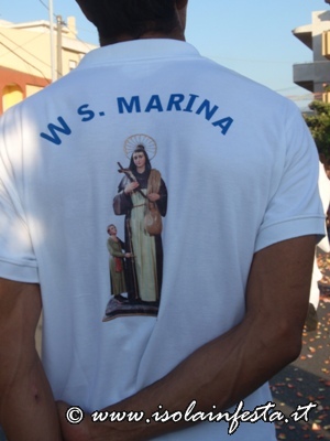 La Frazione di Santa Marina di Milazzo, in provincia di Messina, la domenica successiva al 18 giugno (giorno in cui si celebra liturgicamente Santa Marina Vergine) porta in processione il simulacro della Patrona per le vie del paese. Il simulacro della Santa, conservato per tutto l’anno presso l’omonima chiesa parrocchiale, è un’opera in cartapesta realizzata da Luigi Guacci da Lecce intorno al 1926. Il culto di Santa Marina Vergine a Milazzo è molto antico e ben radicato; già intorno ai primi del ‘500 la Santa era venerata in una piccola chiesetta gestita dai monaci basiliani. Nel 1646 fu realizzata la chiesa attuale che successivamente con l’abbandono dei monaci basiliani fu gestita da un cappellano inviato dall’arciprete di Milazzo.  Nel 1943 la chiesa fu eretta ecclesiasticamente a parrocchia.