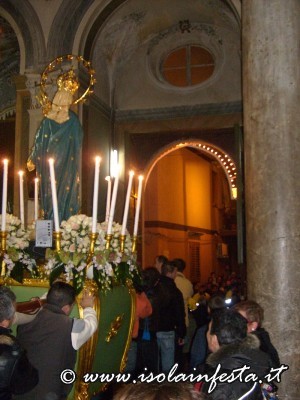 Il momento bello e caratteristico è l’entrata nella chiesa di Sant’Orsola dove la Madonna posta al centro della chiesa viene omaggiata con un canto o con una preghiera.