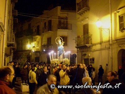 Quindi la processione notturna rimane la più suggestiva. Infatti uscendo dalla Consolazione accompagnata da una marea di gente, la processione attraversa parte del corso principale e sosta davanti la chiesa di San Giuseppe.