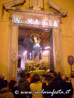 La Madonna farà ritorno sempre processionalmente la domenica successiva all’8 dicembre, sempre nelle ore notturne per essere riposta e chiusa nella cappella, della chiesa di San Francesco Saverio.