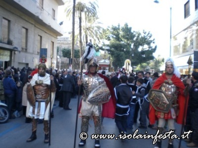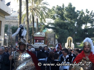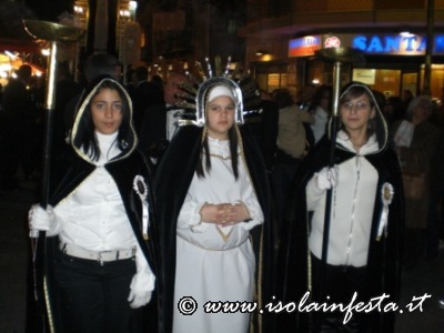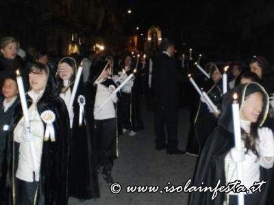 Il Venerdì Santo, alle ore 15:00, nella chiesa parrocchiale di S. Maria di Monserrato, ove ha sede la Confraternita, ha avuto inizio l’Azione liturgica dell’Adorazione della Croce, ed a seguire, alle ore 16:30 circa, sono usciti in processione i fercoli del Cristo Morto e della Vergine SS. ma Addolorata, preceduti dal lungo corteo aperto dalla Croce e i tamburi, con i figuranti rivestiti della tipica armatura dei pupi siciliani, e da ragazze e bambine vestite come l’Addolorata.