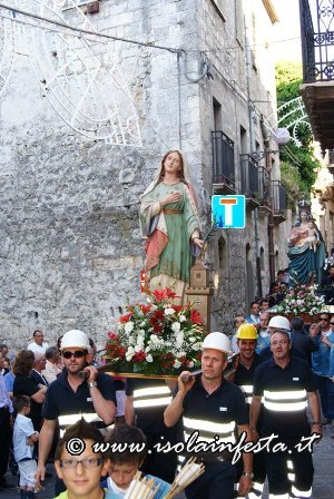 Scuccessivamente la solenne celebrazione eucaristica, il saluto ai santi e il ritorno degli altri in chiesa, chiude il programma religioso, mentre i fuochi d’artificio e lo spettacolo canoro segnano la fine del programma civile.