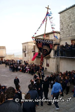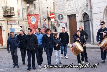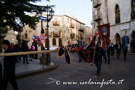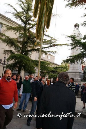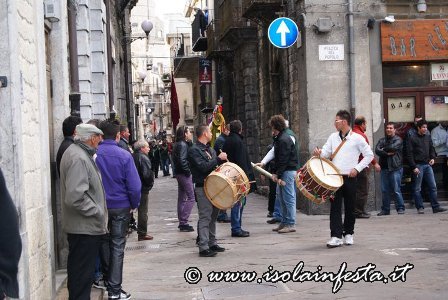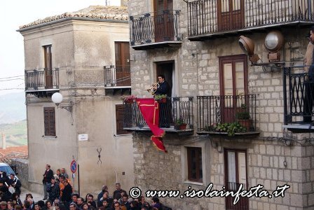 Subito dopo questo commovente momento, le due statue, significativamente portate a lato con due portatori in comune, compiono un ulteriore giro del paese, stavolta molto allegro e spensierato, con marce allegre e le esibizioni di entrambi gli stendardi con bellissime figure (portati su due dita, sul braccio, sul mento, sulle nocche, su un palmo ecc).
