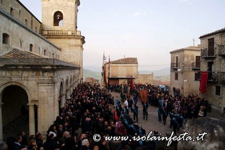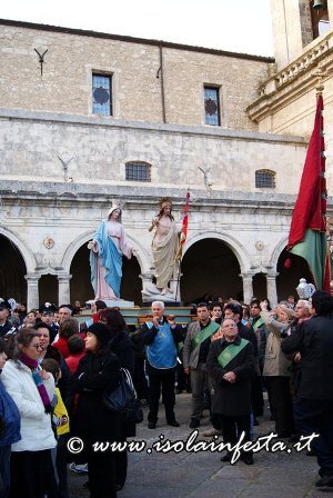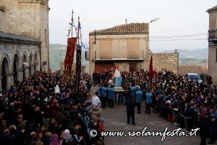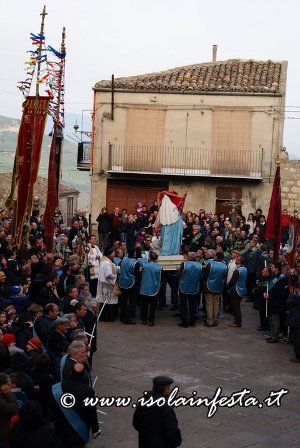 Il passaggio da piazza del popolo è d’obbligo anche per la Madonna, accompagnata dalla congregazione della Madonna di Loreto. Le due statue si dirigono, per strade diverse, a piazza Matrice: qui avvengono “gli incontri” segnati dal suono della tromba e dai mortaretti. Prima gli incontri tra gli stendardi maggiori, poi tra i minori con lo svelarsi dell’incarnazione (il crocifisso) e infine tra le due statue. La Madonna perde il velo nero tra l’esultanza generale e avviene il simbolico abbraccio.