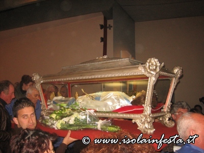 Nel primo pomeriggio l’urna reliquiaria è stata accolta alle prime porte del paese, e disposta su un carro infiorato, processionalmente è stata portata in parrocchia per la celebrazione di una S. Messa solenne.