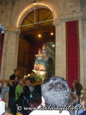L’uscita, come da consuetudine siciliana, è caratterizzata dallo sparo dei fuochi d’artificio e dei tradizionali “nzareddi”.