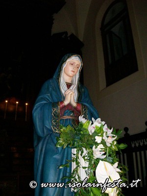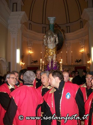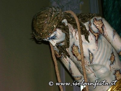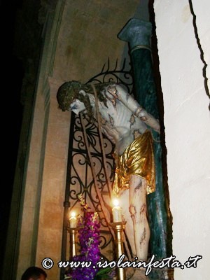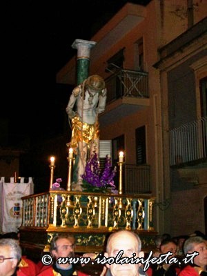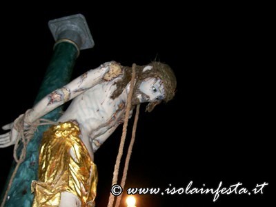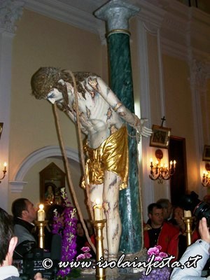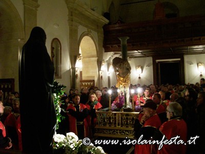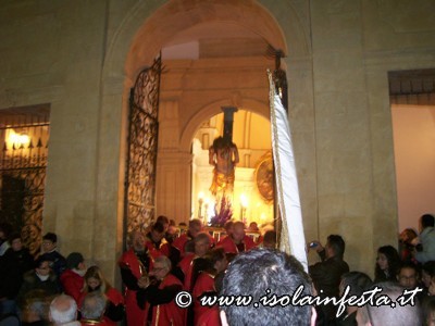 Alle ore 4.00 la commovente “SCIUTA” accompagnata dalle fiaccole accese dalle donne e dal sottofondo della banda che esegue, come tradizione, la marcia funebre omonima. Per tre ore circa si percorre un tragitto che tocca angoli emozionanti: dall’ex carcere, dalle cui finestre in passato si affacciavano i detenuti, alla chiesa della Matrice dove viene ricreato, con la corsa della vara e la chiusura contemporanea del portone centrale, il rifiuto dei sacerdoti di dare rifugio a Gesù Cristo; dal Collegio di S. Maria al Monastero delle Benedettine dove, come le pie donne, le suore offrono conforto e pregano, con canti, chiedendo misericordia.