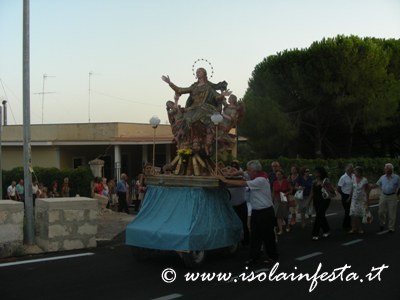 Si recita il S. Rosario e ogni abitante del luogo accoglie la Madonna con altarini, cartelloni di ringraziamento e qualche fuoco d’artificio. Ogni anno si sceglie un quartiere diverso per accontentare tutti.