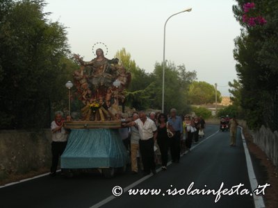 L’artistico e antico simulacro della Madonna esce verso le ore 19:00 e viene portato in processione per le vie dei quartieri.