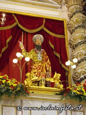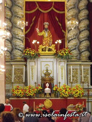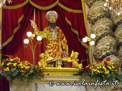 La ricca giornata di fede, tradizione e folclore incomincia con la raccolta delle tradizionali “cuddure”, pani votivi a forma di serpenti o spade, oppure ciambelle particolari con i simboli iconografici del Santo che verranno messe su un carro accompagnato da un corteo storico con cavalli; queste “cuddure” poi verranno durante la mattinata vendute all’asta davanti il sacrato della Basilica.