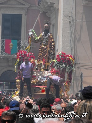 Dietro al Santo invece ci sono le donne che per voto effettuano il percorso della processione a piedi scalzi, tra le strade cocenti di inizio estate.