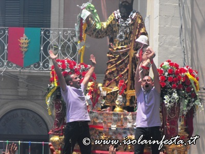É usanza particolare di questa festa l’offerta dei bambini denudati al Santo che tutti nudi vengono presi da due persone incaricate poste sopra la vara che li prendono in braccio e li alzano come se fossero dei trofei, inneggiando al Santo; spesso molti bambini tengono al collo delle collane di soldi che verranno offerte al Santo come offerta.