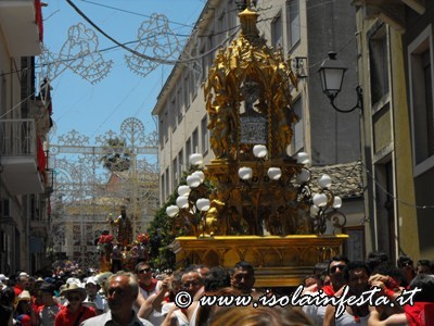 La processione dura circa un’ora e mezza infatti intorno alle ore 14,30 circa la processione si conclude in Basilica, ma stavolta non un’entrata così spettacolare come l’uscita, ma soltanto con degli spari di colpi a cannone.
