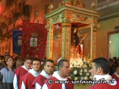 E così percorrendo la via Lincoln con la tradizione antica “RA ANNACATA”, i simulacri fanno ingresso nuovamente in piazza facendo il giro e arrivando davanti alla chiesa madre verso le ore 23.30 circa.