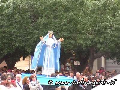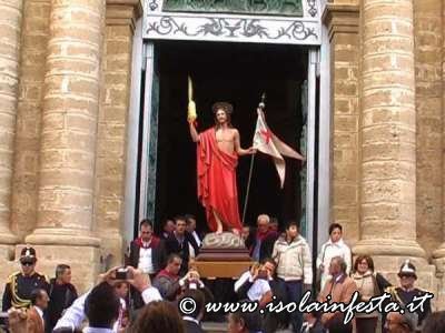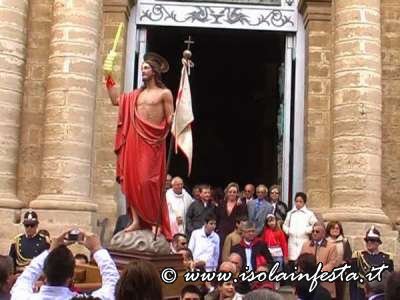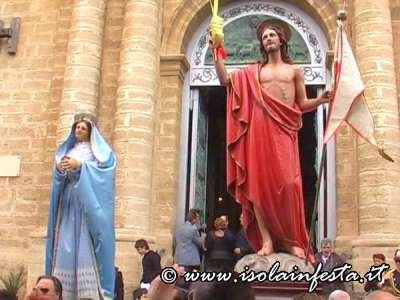 In mattinata dopo la Santa Messa solenne delle ore 10.00 ha inizio la gioiosa processione del Cristo Risorto. Alle ore 11.15 il simulacro esce dalla chiesa madre accolto dai fedeli, dal corpo bandistico che intona marce allegre, tra il festoso scampanio e lo sparo di mortaretti. Segue allora la processione per alcune vie della città.