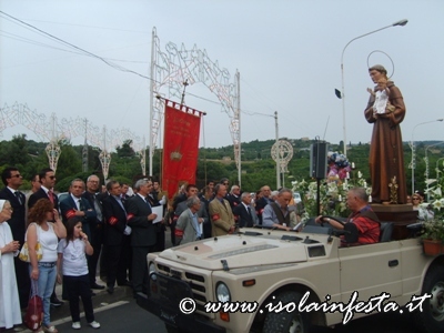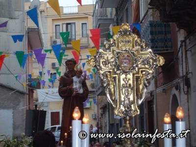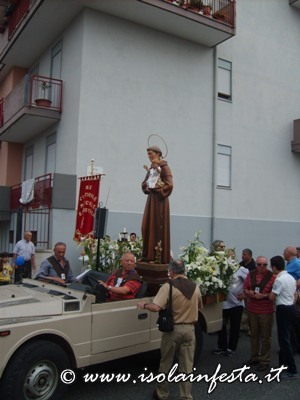 Nel pomeriggio, dopo la messa delle ore 17.00, il simulacro di S. Antonio esce trionfalmente dalla chiesa alle ore 18.00 circa e inizia il suo giro per il quartiere, parato a festa, e la città, accompagnato dai devoti e i fedeli tutti. Una banda musicale allieta il tragitto.