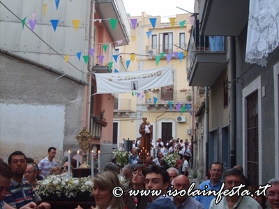 Alle ore 22.00 circa il simulacro ritorna in chiesa e si ferma sul sagrato alla venerazione dei fedeli e di chi non ha potuto partecipare alla processione. Dopo lo spettacolo pirotecnico delle ore 24.00 che conclude la festa, il simulacro rientra in chiesa e posto nella sua cappella