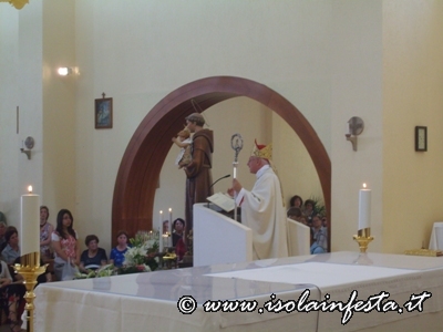 Il 13 giugno è il giorno tanto atteso della festa: alle ore 8.00 viene aperta la chiesa e i fedeli, già in attesa, fanno a gara per prendere posto. Alle ore 10.00 viene celebrata la S. Messa solenne in cui avviene la benedizione del PANE di S. Antonio e delle vesti votive. I bambini indossano il tradizionale saio, gli adulti invece uno scapolare votivo che riproduce il cappuccio dell’abito francescano. La partecipazione a questa funzione è grande, tant’è che i fedeli arrivano sin fuori la chiesa stracolma.