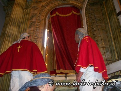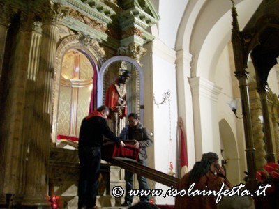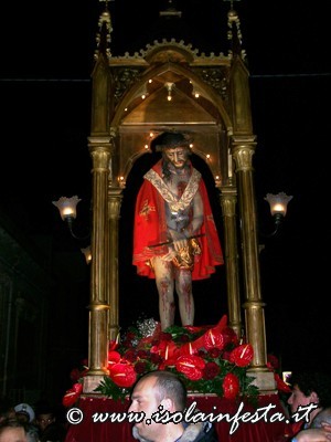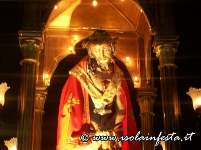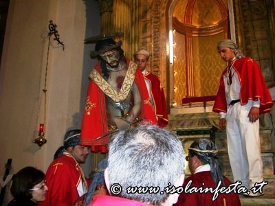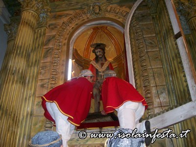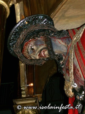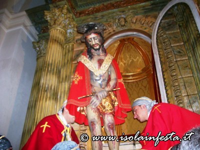 Dopo il rito della Comunione ha inizio la predica che termina allorquando il predicatore, appositamente invitato, pronuncia “Ecce Homo”. In quel preciso istante viene svelato il simulacro “Ro Santissimu Cristu” che viene accolto dal grido unanime dei “NURI” che urlano a squarcia gola “Evviva u Santissimu Cristu”.