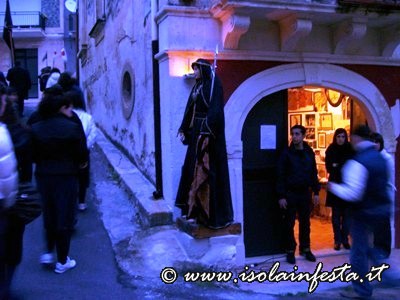 I NURI (Nudi o Ignudi) sono uomini che per voto o per grazia ricevuta, solo quella particolare sera, sono vestiti con pantaloni, camicia e calze bianchi (scalzi); sulle spalle portano una mantella rossa sulla quale sono cucite al centro ed ai lati delle croci color giallo-oro, ad imitazione del simulacro; alcuni invece indossano un particolare “Scialle” di lana o di lana – seta di colore rosso cupo, con tipiche decorazioni orientaleggianti. Lo “Scialle”, lavorato anticamente con i telai, verso la fine dell’ 800 s’indossava in particolari occasioni, quali matrimoni o feste; inoltre i “NURI” portano al collo una corda intrecciata di “liama” (ampelodesmo) detta “U Pasturuni” annodata a mò di cappio, tipico delle Compagnie dei Penitenti. La testa è coperta da un fazzoletto annodato “A Trinciettu” (legato dietro la nuca) sul quale viene posto “U Circu” (corona) intrecciata con verghe della pianta selvatica “mitavira” (ampelodesmo). Ciascuno tiene in mano una cannuccia, simbolo dello scettro regale, alla cui estremità superiore viene inserita un’immagine piccola del SS. Cristo, tenuta fissa con un nastrino rosso legato a fiocco.
