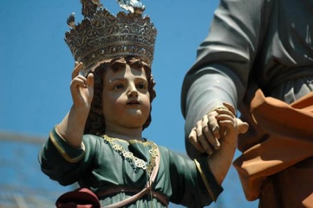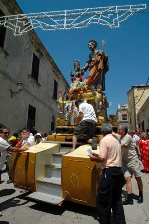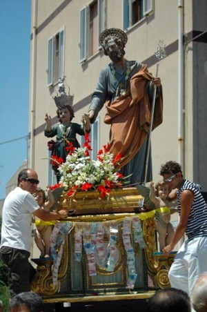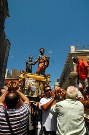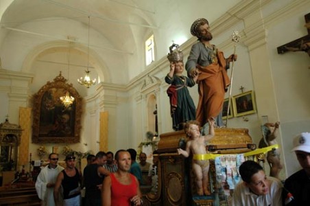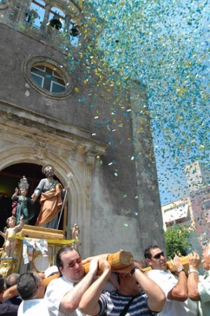 S. Giuseppe esce dalla chiesa alle ore 12,00, salutato dal suono delle campane ed accolto dal lancio di “nzareddi”.