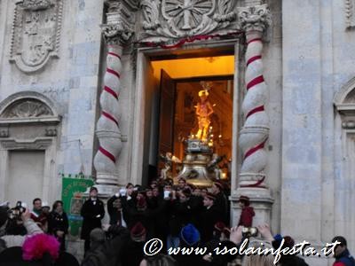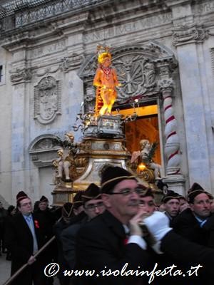 Dopo i fuochi d’artificio, il Santo percorre le vie principali di Ortigia, tra il grido e le preghiere dei devoti, ed in serata fa il suo rientro in chiesa.