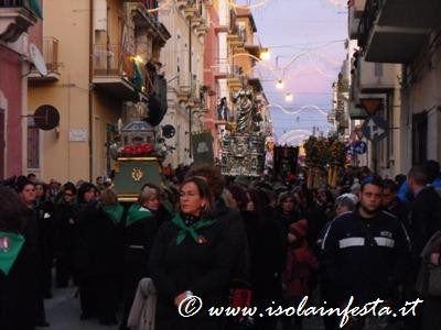 La processione, sia il 13 che il 20, è molto suggestiva perchè si ha una lunga processione penitenziale di moltissimi fedeli e devoti che a piedi nudi precedono il simulacro disponendosi in due lunghissime file lungo la strada portando della candele accese in mano.