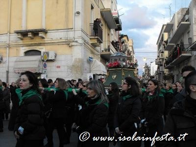 Inoltre la processione è ricca di momenti di preghiera incessanti; spesso le donne indossano il tradizionale abito votivo color verde.