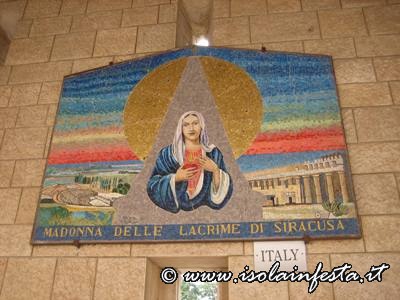 Una curiosità: la madonna delle Lacrime come detto prima è famosa anche in tutto il mondo perchè a Nazaret, per farne un esempio, vi è un cortile dove le varie nazioni hanno preparato un loro mosaico; tra di questi, tra i mosaici italiani vi è pure raffigurata la Madonna delle Lacrime di Siracusa.