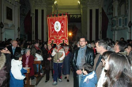 La festa invernale, dopo vari momenti di preparazione e preghiera, ha il culmine la sera della vigilia del giorno del martirio del Santo, il 19 gennaio, in cui entra in chiesa madre l’Associazione dei devoti di S. Sebastiano con il loro stendardo che precede il parroco che porta in mano il braccio reliquiario.