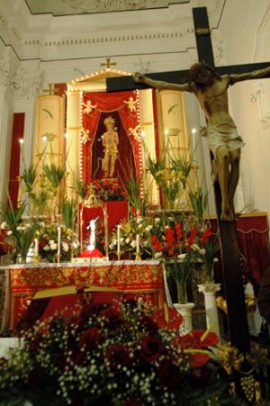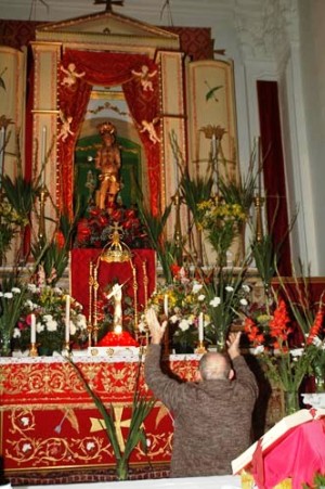 Tre giorni prima dell’ultima domenica di gennaio, il simulacro di S. Sebastiano viene velato per dare posto al SS. Sacramento che rimarrà esposto durante i tre giorni successivi per le tradizionali “Quarantore di S. Sebastiano”.
