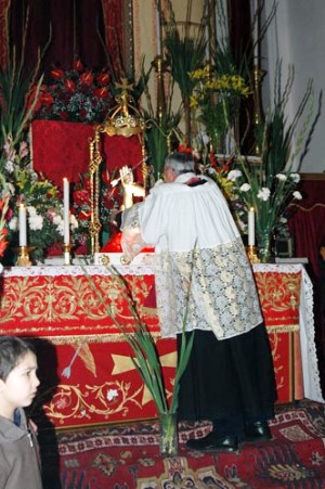 Questa messa è la messa del ringraziamento per le avvenute quarantore, in cui al suo termine il simulacro del Santo Patrono viene velato per l’ultima volta fino alla grande festa estiva di luglio.