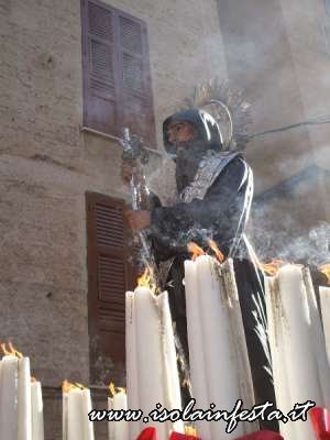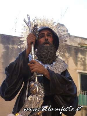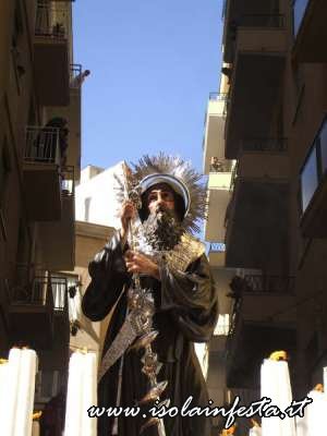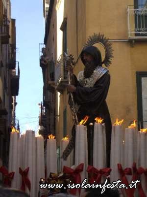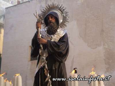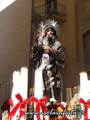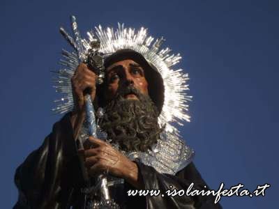 La processione continua lungo la città vecchia fino alla chiesa di San Pietro, dove il Santo viene posizionato su un carrello.