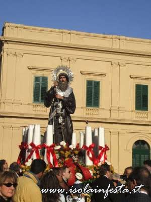 I festeggiamenti hanno inizio il mercoledì subito dopo Pasqua: alle ore 18:00 con la rituale “SCINNUTA” del Santo, che consiste della discesa del Santo dall’altare maggiore, che percorre tutta la navata centrale della chiesa fino al sagrato; dopo qualche minuto rientra e viene posizionato sulla “vara” che servirà per la processione.